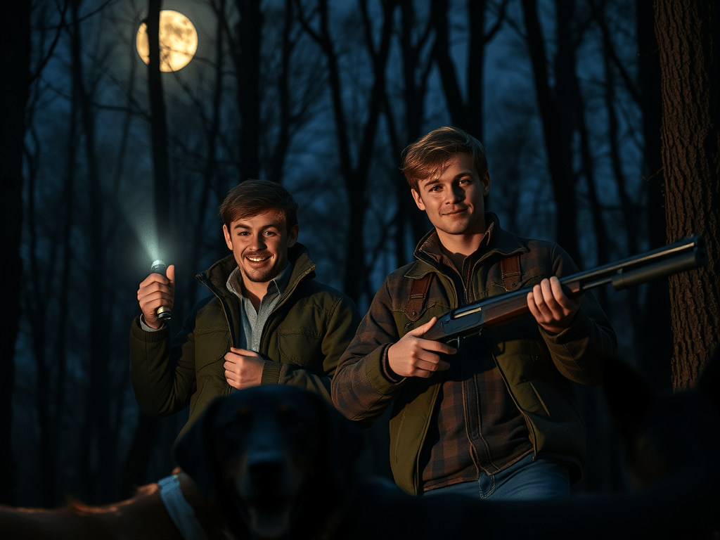 The hounds bayed sharp and wild, their voices bouncing off the oak-studded hills of eastern Tennessee. Jace loped ahead, his lanky frame cutting through the underbrush, a coon’s trail hot under his boots. Behind him, Tuck trudged steady, stocky and sure, the old 12-gauge slung over his shoulder. The night was thick with cricket hum and the tang of pine, the kind of dark that swallowed you whole if you didn’t know these hollers.